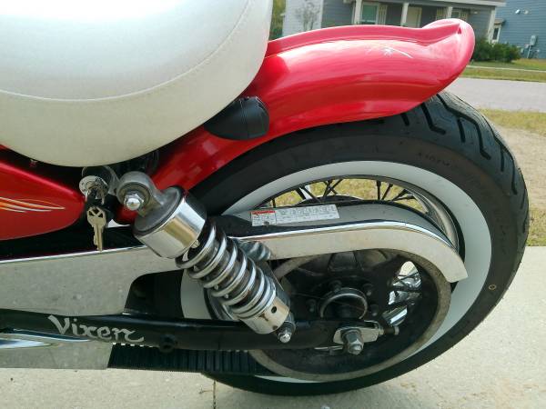 I built this bike for the Thunder Beach rally. The bike was a hit everywhere I went(Salty Goat/Miss Newby's/Patches and the Dive) She rode as great as she looks. This bike screams 60s bobber with the Metalflake Candy Apple Red paint to the retro White glitter seat, Plus pinstripe by Reed to finish it off perfectly! Sounds like a fricken Black hawk coming across the Hathaway bridge. People had to ask me what it was? I told them it's a single cylinder thumper belt drive Suzuki 650cc. I have built six of these and everyone of them is better then the previous ones. The Candy Red paint on this one is Exceptional thanks to Darrel. Then Billy did the custom glitter seat. Pretty much everything on the bike is new or rebuilt. Fun bike to bar hop on or I wouldn't hesitate to take it on longer trips either. This bike is also very easy to handle because it is low to the ground and has a super easy clutch! The exhaust is kinda loud when you get on it, but mellow when cruising. It has a five speed transmission. I can promise you you can't find more fun for my asking price, and I can deliver within 50 miles of Panama City for free once paid in full. I will entertain trades also. Title is FL and in my name(no liens). will sell for $2795.00 also.